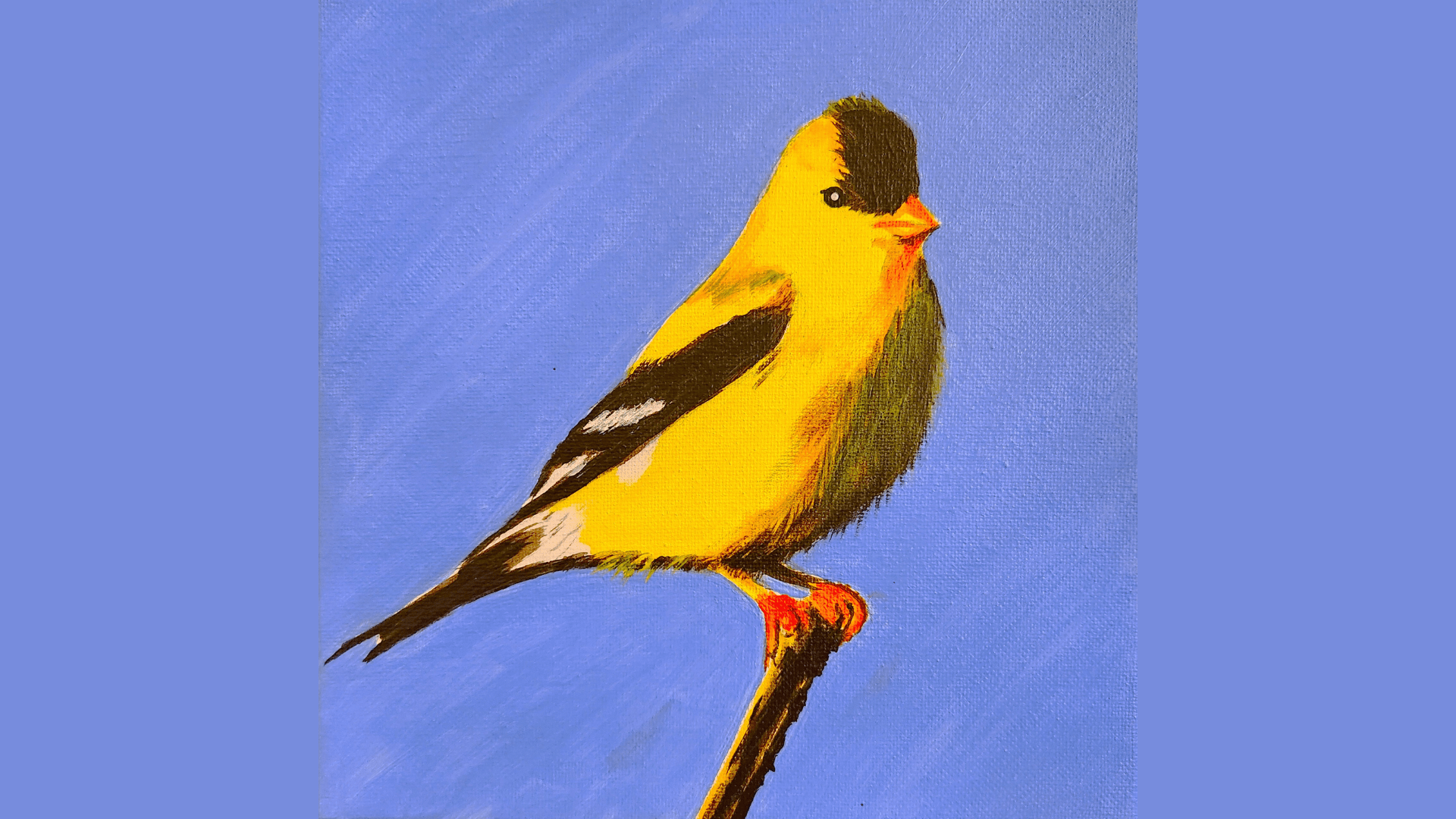 Join artist Patrice Jarvis-Weber to explore acrylic painting. In this class participants will receive step-by-step instruction in this medium. All participants will walk-away with an individual painting and a desire to continue to explore painting with acrylics! This class is designed for all ages. All materials will be provided. In anticipation of our summer exhibition Wings and Wilderness, create a painting of the lovely American Goldfinch.